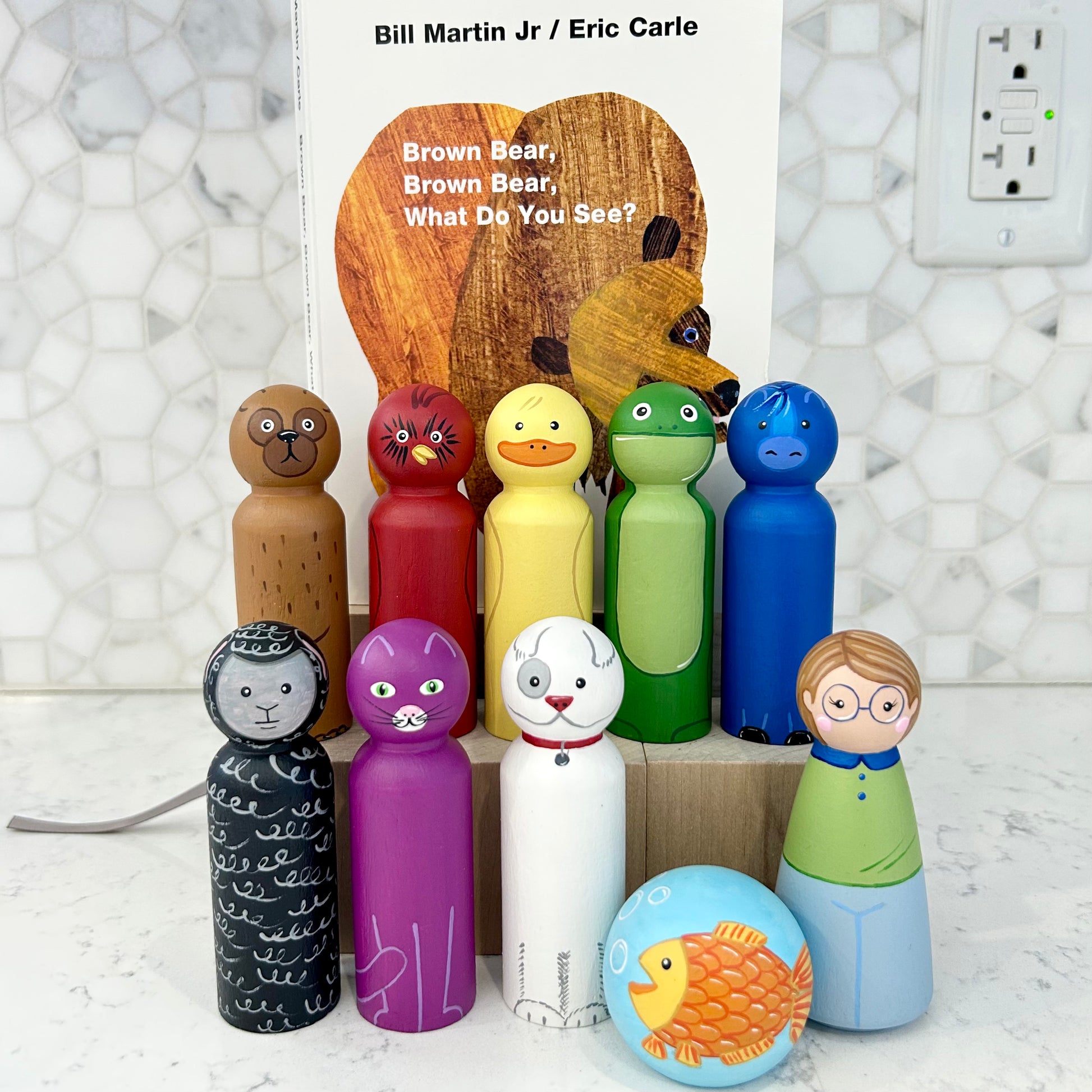 This colourful set inspired by Eric Carle’s beloved picture book, “Brown Bear, Brown Bear, What Do You See?” is perfect for learning and play.