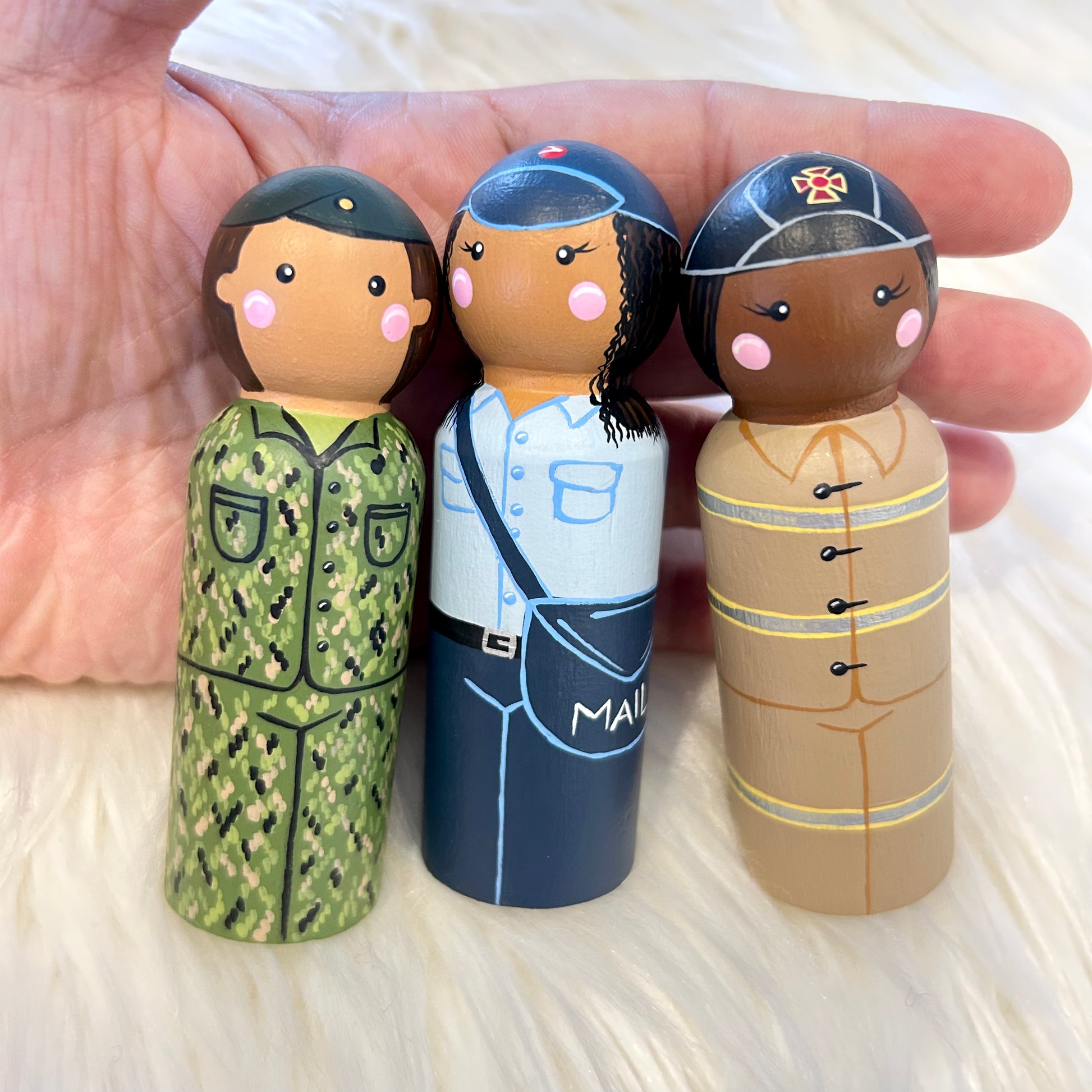 Perfect for imaginative play, classroom learning, or as a thoughtful gift, our community helper peg dolls are a meaningful way to introduce children to the value of inclusivity and the importance of every role in society.