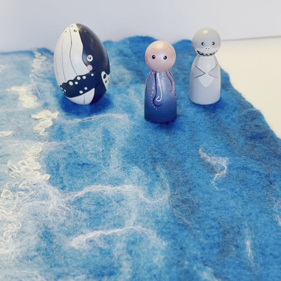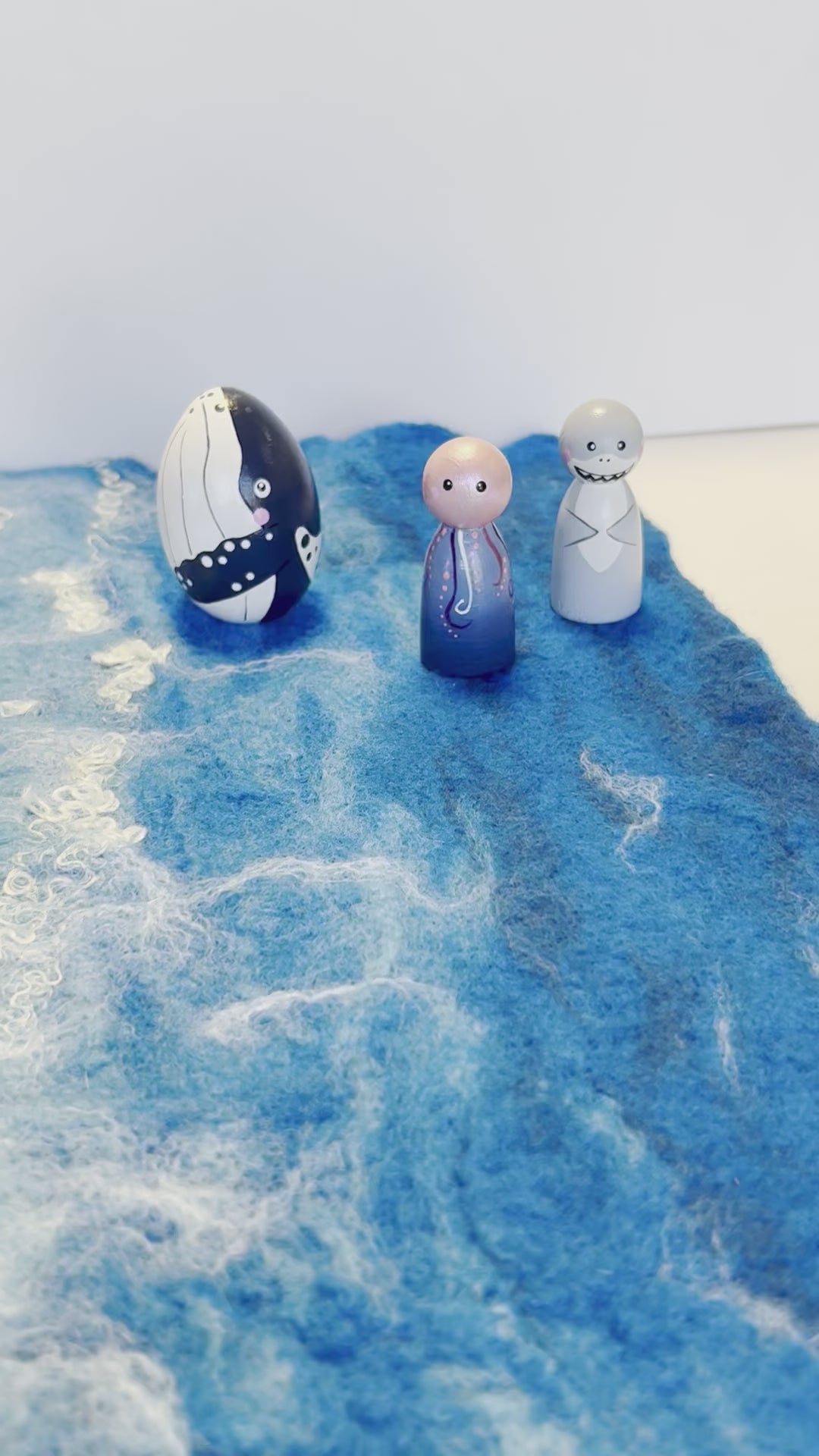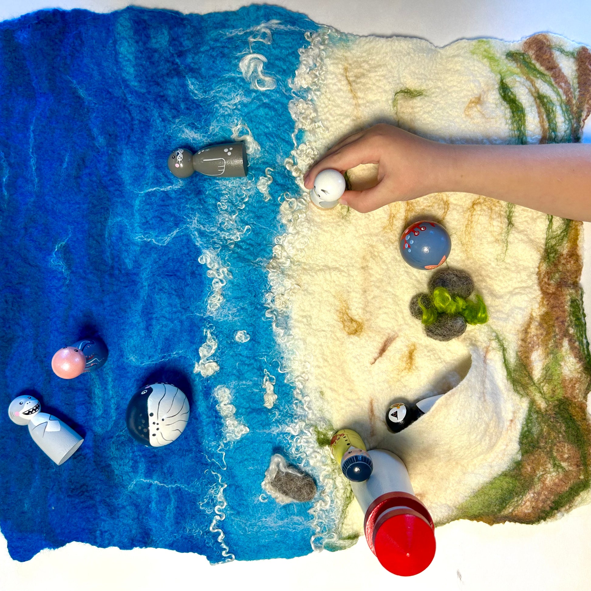 It’s perfect for play or display for ages 3+ as it includes small pieces. This set coordinates perfectly with our coastal inspired wet-felted play mats.