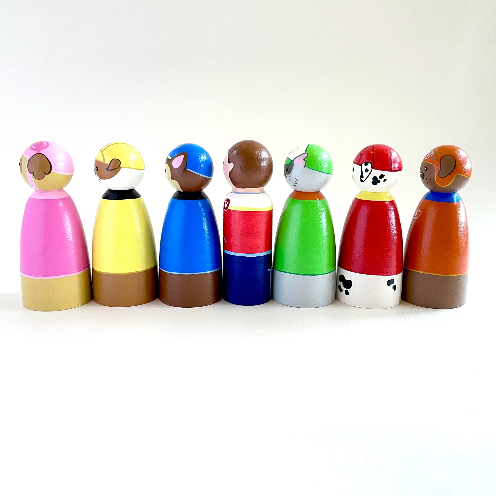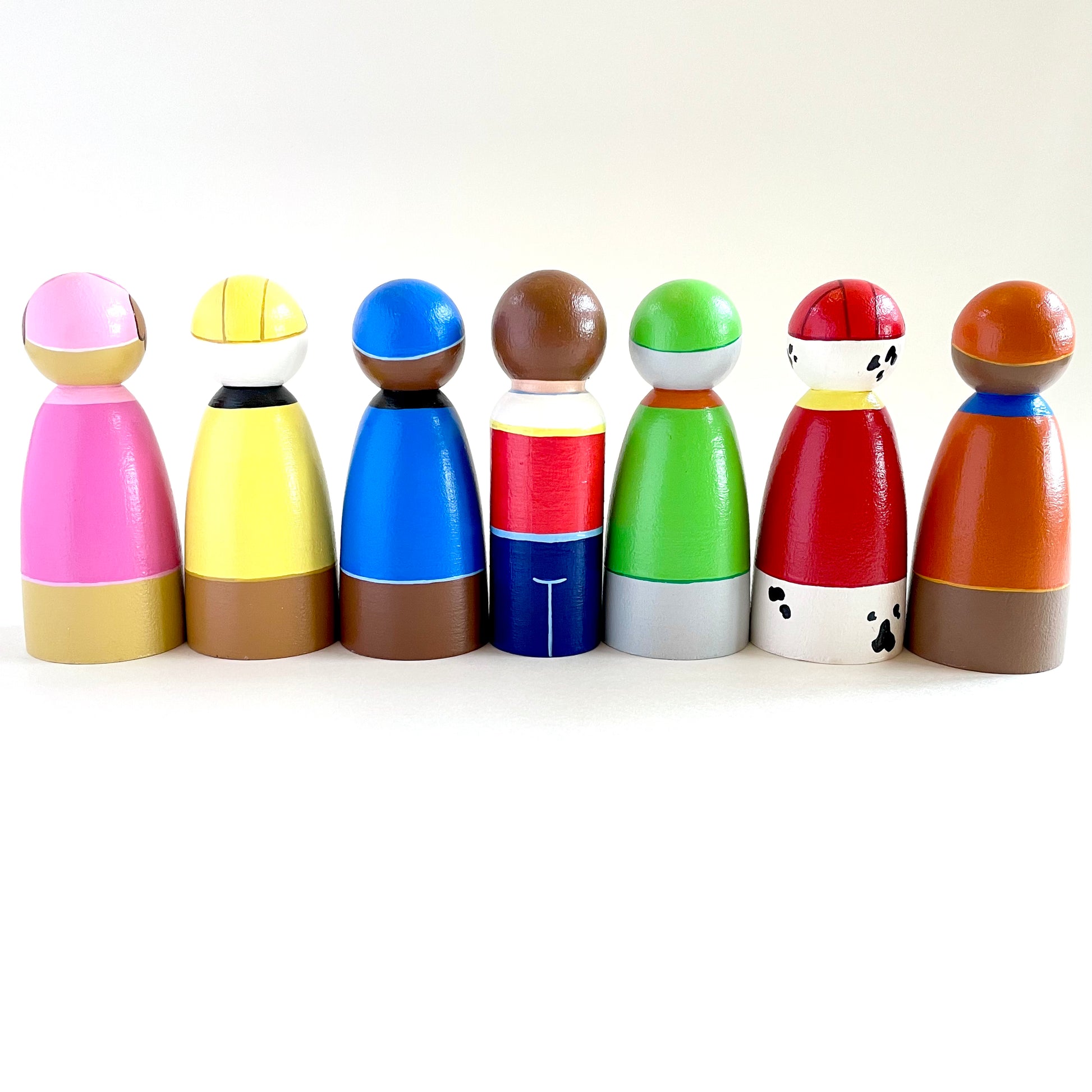 Each figure is made of hardwood and is hand painted using non toxic water based paints, then coated in a non toxic clear coat for added durability.