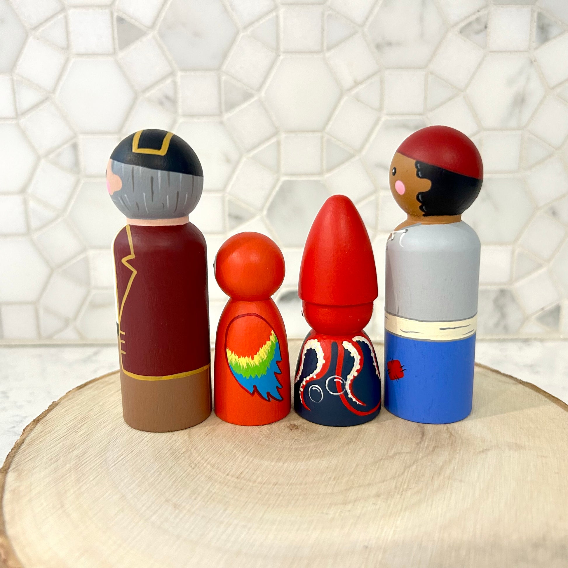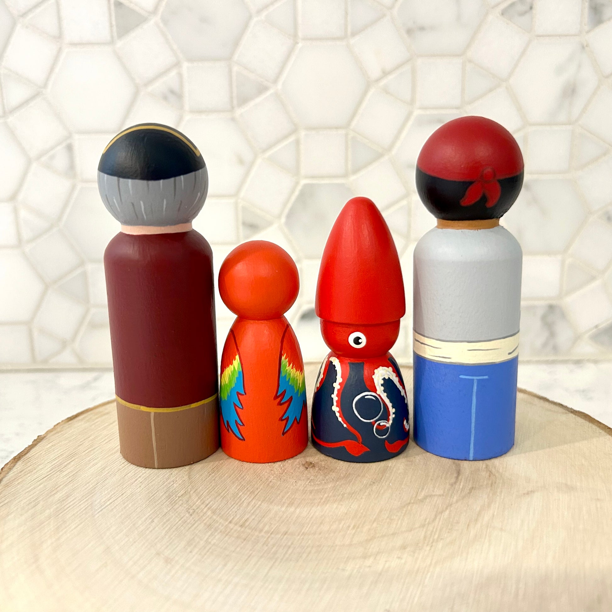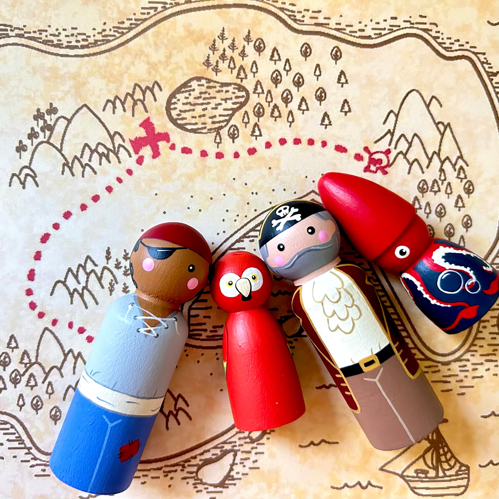 Whether it’s for pirate-themed play, display, or as a special gift, this wooden pirate peg doll set brings timeless fun and adventure to any playroom.