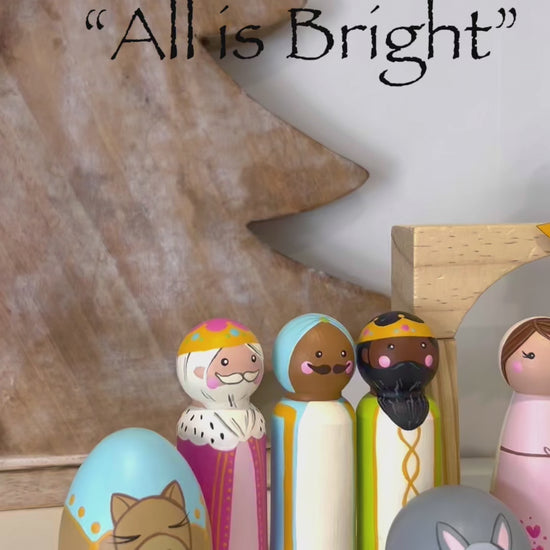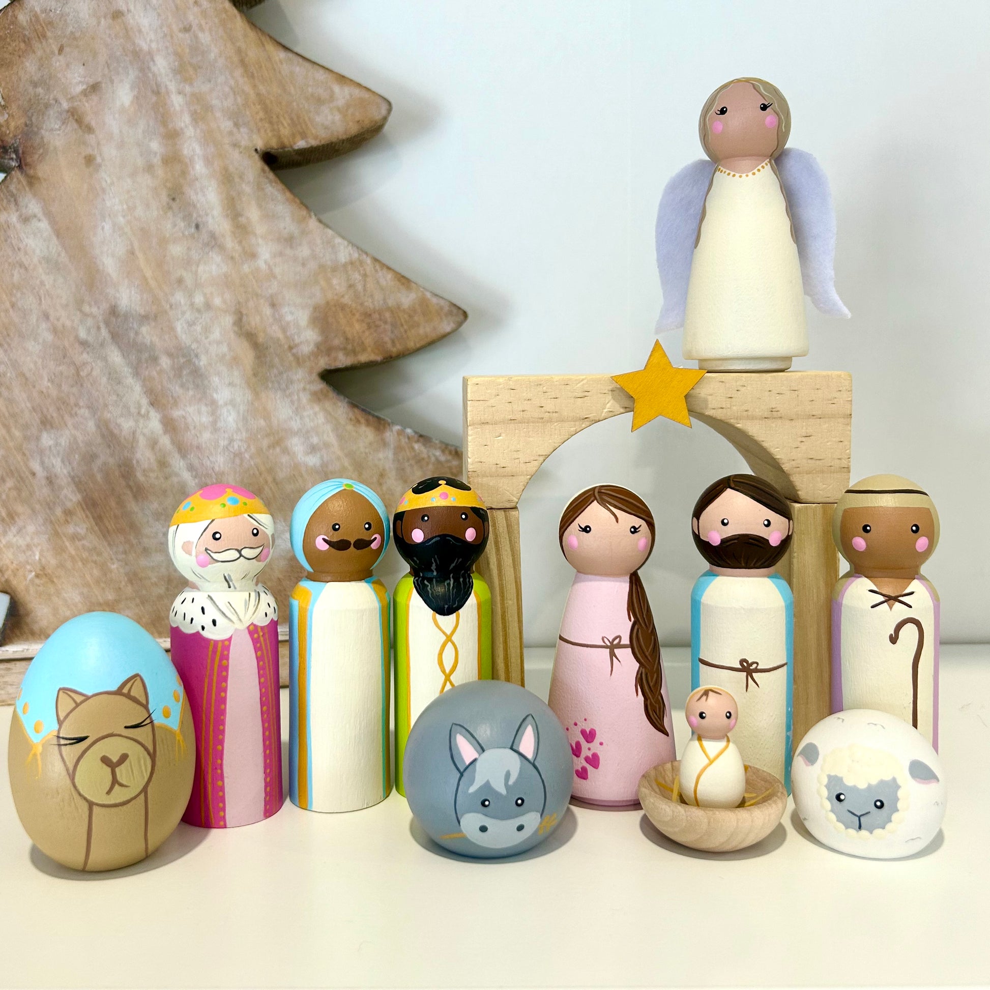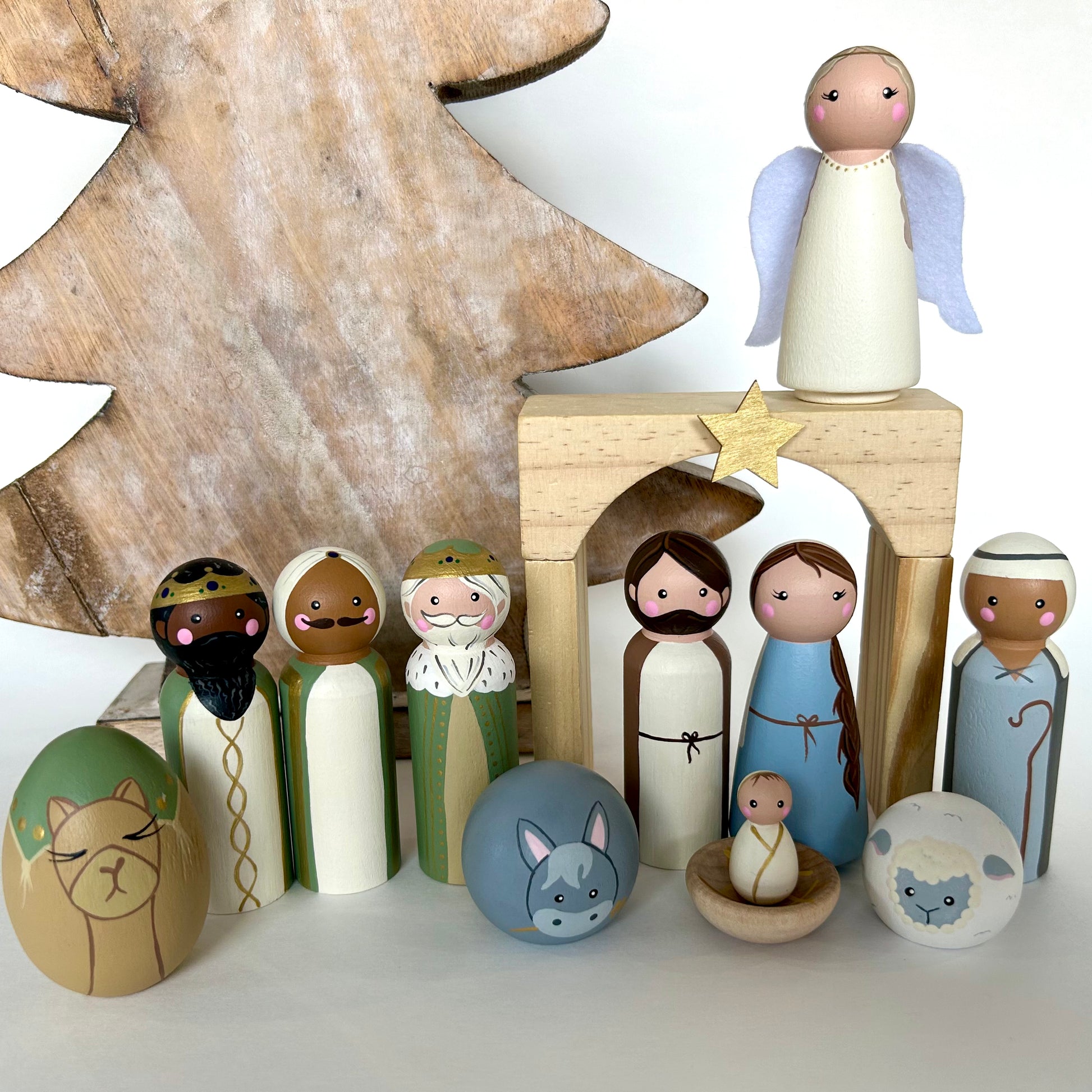 Celebrate the reason for the season with this gorgeous peg set. Make new traditions and memories as a family setting up this gorgeous nativity scene keepsake every year.